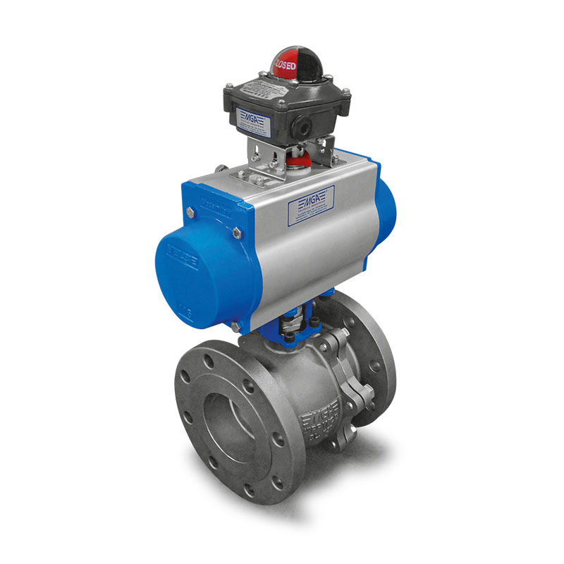 Os atuadores Pneumáticos MGA são equipamentos indispensáveis na automação das válvulas de esfera. Disponíveis nas versões Dupla Ação (DA) ou Simples Ação (Retorno Mola – RM) com os mais variados torques conforme a necessidade do cliente.